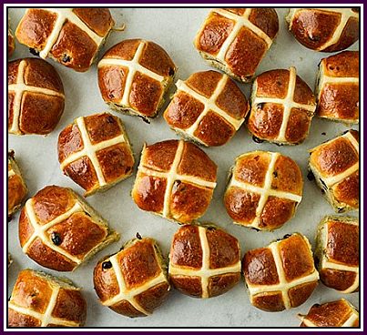 When I was a child, one ate Hot Cross Buns on Good Friday. These were also made in other English-speaking countries, but alas, seem to be disappearing from the shelves of bakers and supermarkets nowadays.