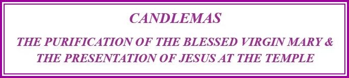 There are a number of observances that take place in February that remembered throughout the month including: the Purification of the Blessed Virgin Mary. The Feast Day (known as Candlemas, The Feast of the Presentation of Jesus Christ, The Feast of the Purification of the Blessed Virgin Mary or The Feast of the Holy Encounter is observed on February 2nd and commemorates the Presentation of Jesus at the Temple by St. Joseph and St . Mary, the Mother of Jesus.