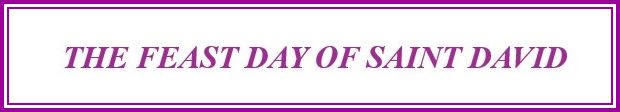 The first of March is the Feast Day of Saint David, the Patron Saintof Wales and is the date of his death in 589 AD. Saint David was a Welsh Christian Prelate who served as Bishop of Mynyw (Menevia) during the 6th Century. He was a teacher and preacher together with the founding of monastic settlements and churches in Wales, Dumnonia, and Brittany. St David’s Cathedralstands on the site of the Monastery he founded in the Glyn Rhosyn Valley of Pembrokeshire.