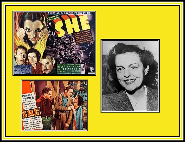 SHE was next filmed in 1935, starring Helen Gahagan Douglas (1900–1980) in the title role of AYESHA, SHE WHO MUST BE OBEYED. The spectacle also starred Randolph Scott (1898-1987) and Nigel Bruce (1895-1953) and was produced by Merian C. Cooper (1893-1973). The film was not a success when initially released, but was more popular when, in 1949, it was re-released with The Last Days of Pompeii.